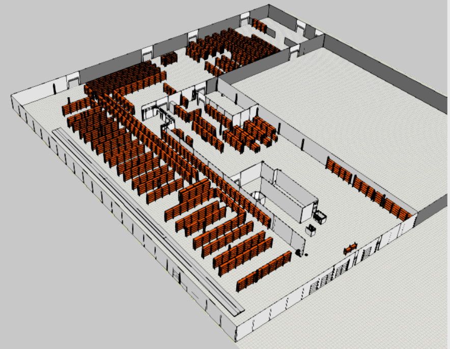 As part of its broader automation strategy, MSK used Visual Components manufacturing simulation to study intralogistics automation. A detailed 3D model of the factory was created based on floor plans, production data and real material flows. The simulation included the movement of mudguard racks, painted parts, empty pallets, subassemblies and palletized materials coming from receiving.
