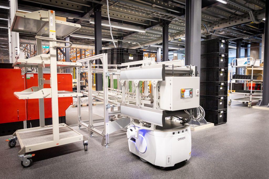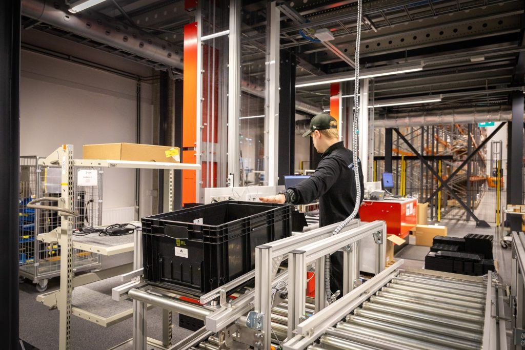 The solution? Build up. A 12-meter-high logistics center to free up the old warehouse for production. This move would double logistics capacity and open up valuable floor space. At the center of the new 2,000 square meter logistics center is the AutoStore system, a cube-based automated storage and retrieval system using 8,000 bins, 10 robots, and 6 ports. It was central to the overall layout and process design and formed the core which the rest of the logistics center was built around.