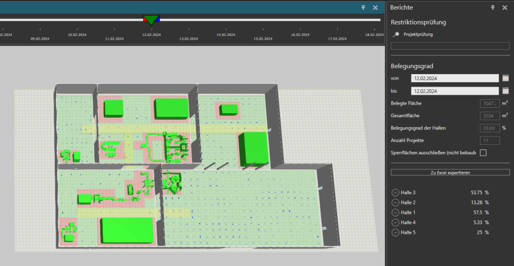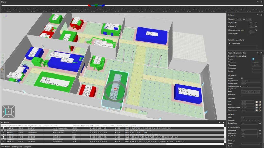 • Digital space management for assembly, production, and hall allocation planning.